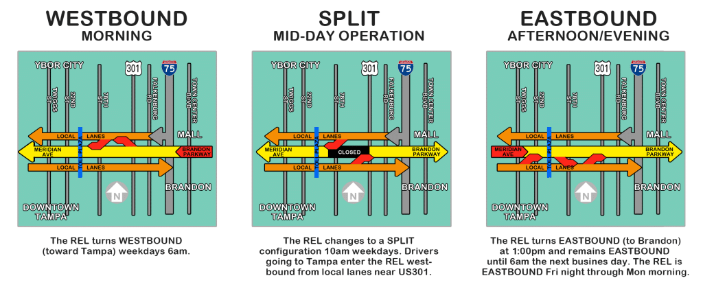 The REL provides a direct connection between Brandon and downtown Tampa, allowing for express travel of people in cars and buses. It is an innovative project that has won approximately two dozen awards of recognition by local, state, national and international organizations.